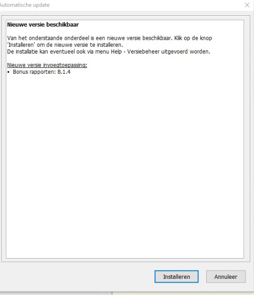 Klik op de map Invoegtoepassingen\Bonusrapporten en open het bestand bonus.aplg in bv kladblok, controleer of de versie wel degelijk 8.1.4 is.