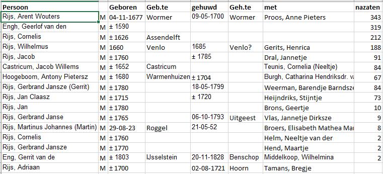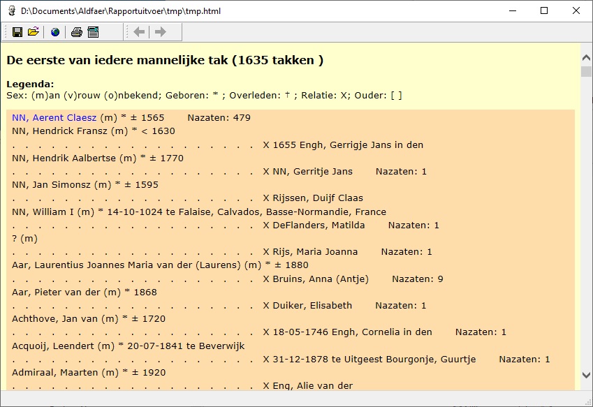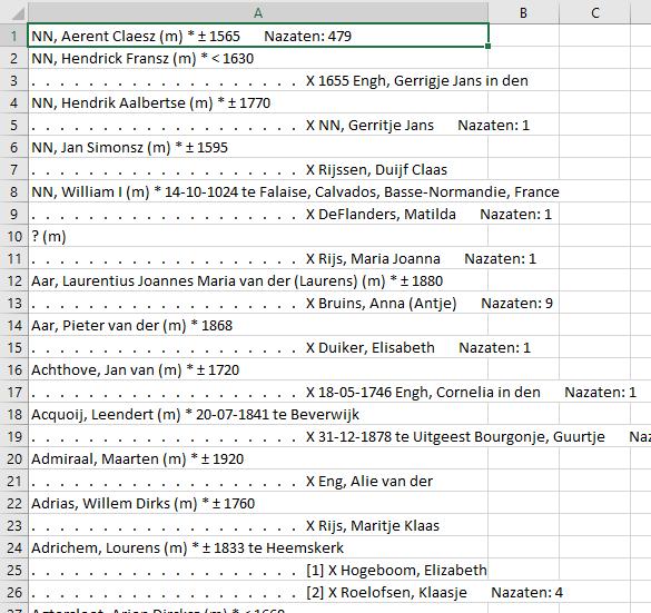 Overigens is de functie 'Personenllijst naar Excel uw beste keus. Ik zal op de rit zetten dat er een kolom wordt toegevoegd voor het aantal nazaten wat iemand heeft. Vgls mij heeft u dat niet getest.