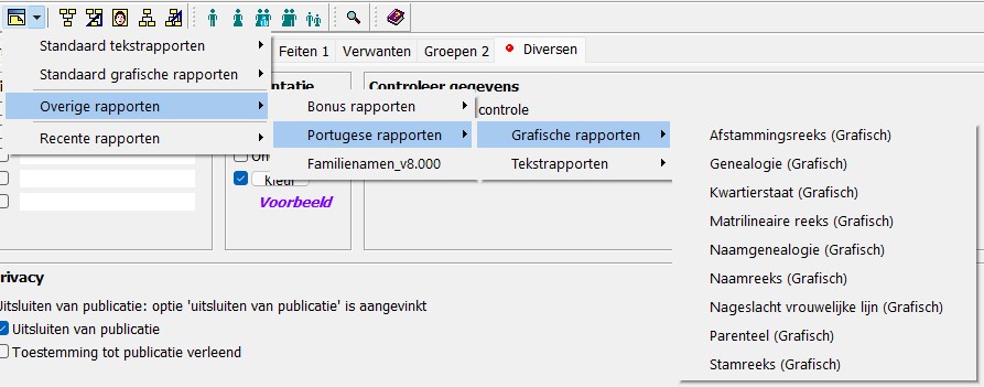 Zie zojuist dat het Portugese rapport ook in het Portugees rapporten uit kan draaien.