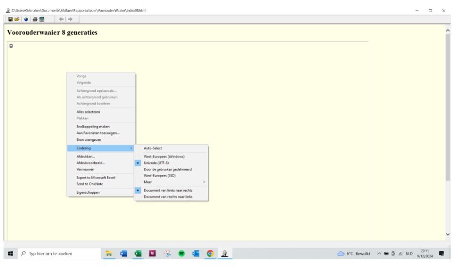 Dit is het scherm (zonder het menu) als resultaat van de aanmaak van de waaier. Zou het kunnen dat de geselecteerde code (West-Europees, Unicode, ...) niet klopt?