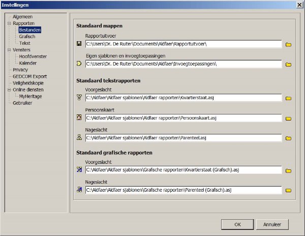 Bij een installatie wordt naast de installatie can het programma, al dan niet op de interne of externe schijf, een map C:\User\jouwnaam\Documents\Aldfaer met daarin submappen.