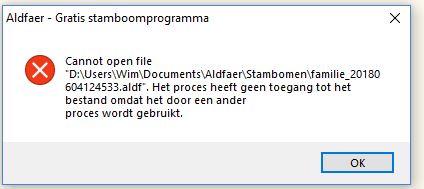 Maar het vreemde feit doet zich voor, dat als ik Aldfaer open, ik gelijk de foutboodschappen krijg, zoals ik die in mijn eerste bericht heb omschreven.