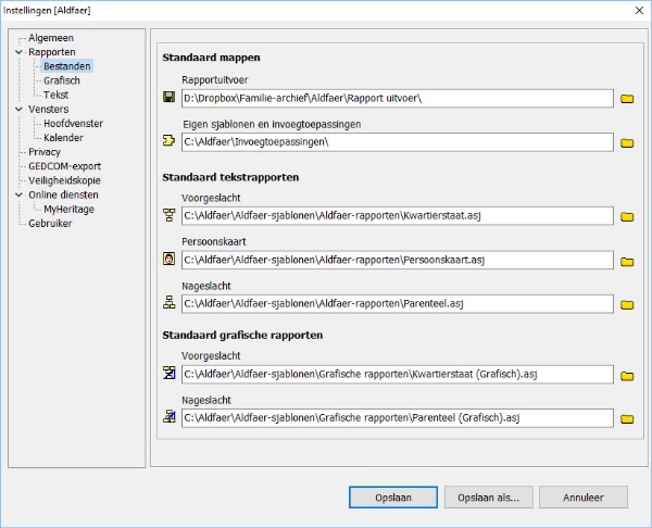 Om uit te sluiten dat het probleem niet ontstaat door dat je je je stamboom gebruikt uit de dropbox zou je een proef kunnen doen om een kopie te maken van je stamboom in de dropbox en deze in een map op d:\ te plaatsen niet in de map waar Aldfaer in is geïnstalleerd.