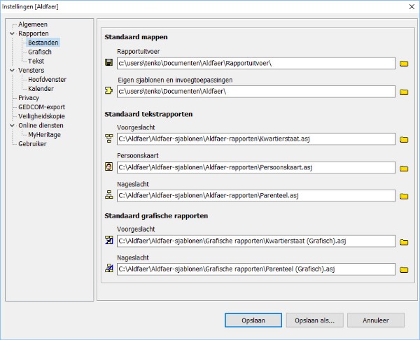 En bij Eigen sjablonen en Invoegtoepassingen mag deze niet staan in c:\Aldfaer daar mag de mappen en bestanden staan die door Aldfaer tijdens de installatie zijn gemaakt.