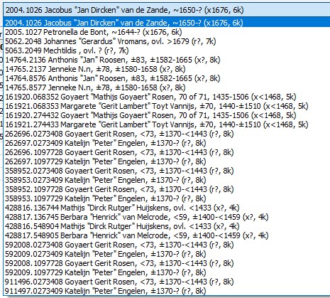 Door telkens naar dit overzichtslijst terug te gaan en de volgende persoon aan te klikken krijg je weer een nieuwe verwantschaps-berekening tussen die 2 personen.