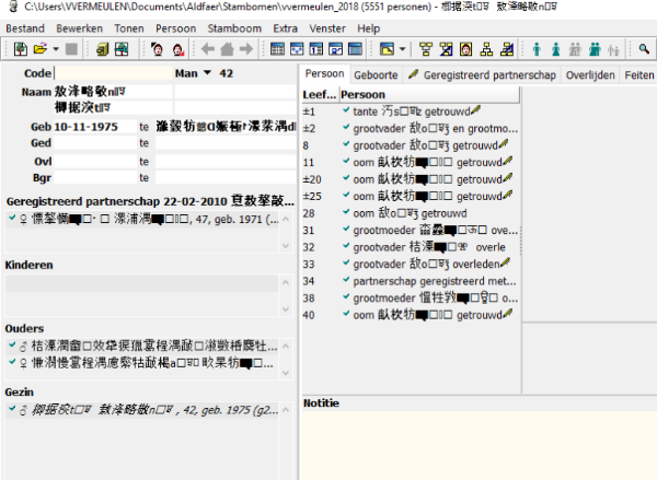 Nadat ik mijn Aldfaer heb geupdate naar 7,0 zijn al mijn gegevens in het chinees, maar niet de standaard teksten die Aldfaer zelf neerzet zoals lijstje met levens gebeurtenissen.
