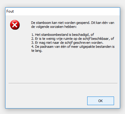 Waarschijnlijk is de bestandsnaam te lang, misschien door steeds openen veiligheidskopie (zie: www.deruiter.ch/Aldfaer/Help/Aldfaer%20Padnaam%20te%20lang.pdf )