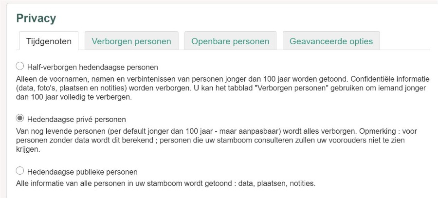 Misschien is het zinvol om het privacy filter eens te herzien. Mogelijk is daarbij Geneanet een bron van inspiratie