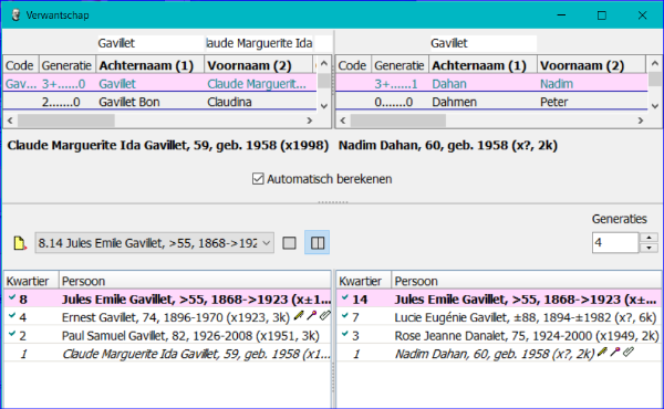 Wat Helmer verwacht is dat 2 personen dezelfde nummering hebben als deze met een gelijk aantal generaties verder getoond worden.