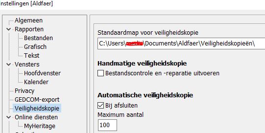 2) Aldfaer heeft de fout helaas niet kunnen herstellen. Verwijder de verborgen map "C:\Users\wirre\Documents\Aldfaer\Stambomen\_0xADFAE350_STB Jansen_201810272255" en open de stamboom dan opnieuw, of zet een recente veiligheidskopie terug.
