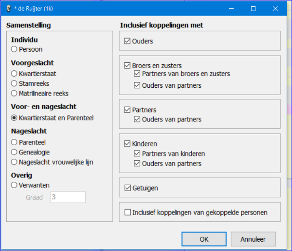 Ik herhaal dat ik het een vreemde manier vindt voor het samenstellen van groepen. Vooral daar waar het gaat over dynamische groepen. (kwartierstaten/parentelen)