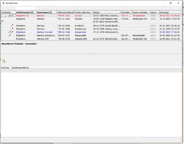 Heb ik gedaan. Dan is het scherm Verwantschap weer in orde, met 2 kolommen naast elkaar.
