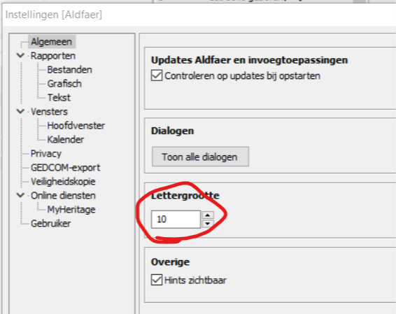 Ik weet niet wat u allemaal op het forum heeft gelezen, maar alleen onder de versie Aldfaer 7.0 kan de lettergrootte ingesteld worden. En wel onder de Extra -> Instellingen.