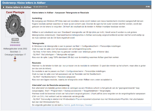 Re: Te kleine of te grote letters in Aldfaer bij Windows 7