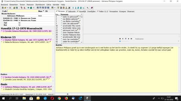 Op mijn laptop is de lay-out van het programma Aldfaer (versie 7.0.0.5) zodanig dat de tekst niet binnen de daartoe behorende regels past. Het lettertype is anders dan op mijn andere computer en staat op grootte 12 ingsteld net als op mijn andere computer. Sommige kopteksten zijn erg groot, zoals "Huwelijk/relatie", "Kinderen", "Gezin".