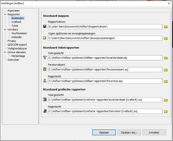 In de bijlage van Rien bericht #25591 is te zien dat daar map ten behoeve van de standaard rapporten begint met c:\Aldfaer Dat betekent dat Aldfaer zijn programma geïnstalleerd heeft in c:|Aldfaer