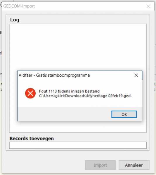 tijdens het importeren via Gedcom krijg ik de foutmelding 1113 Vreselijk irritant om een stamboom te starten en het lukt niet op deze manier.