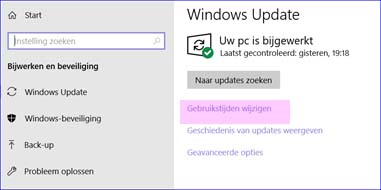 Microsoft Windows 10 voert automatische updates uit op uw PC, als deze PC voor langere tijd buiten gebruik is maar wel ingeschakeld is. Tijdens dergelijke situaties kan men b.v. Aldfaer geopend hebben staan. Dat wil dus zeggen dat het enkele *.aldf stamboombestand uitgepakt is in tientallen hulpbestanden. Wat ons is opgevallen is dat de diverse meldingen van ontbrekende kp_alf, gri_alf bestanden zich naar onze waarneming uitsluitend voordoen met gebruik onder Windows 10. In de instellingen van uw PC heeft Microsoft een standaard instelling geplaatst om vast te leggen wanneer een update al dan niet mag worden uitgevoerd. Laat u uw PC in bedrijf met Aldfaer en/of andere programma’s geopend kan het gebeuren dat Windows een update gaat uitvoeren en mogelijk (maar we hebben geen bewijs) het één van de Aldfaer uitgepakte bestanden beschadigd.