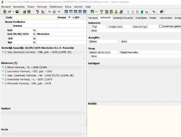 Als het allemaal werkt dan moet u zich ook beraden op het feit dat u stamboombedstanden (*.aldf) heeft opgeslagen in de map Veiligheidskopieen en dat de naam van de stamboom al een paar datumstempels heeft die aangepast moeten worden.