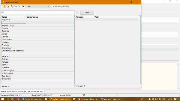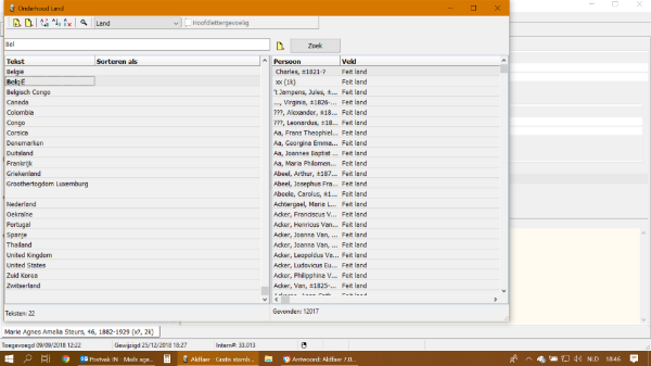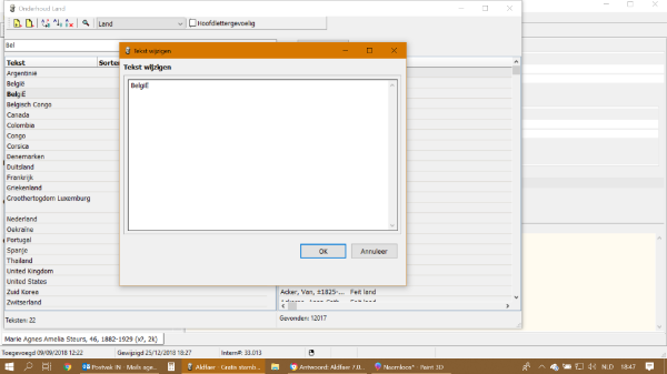 1. Indien ik België in het veld correct intypte veranderde het programma (aldfaer) de tekst zelf met een grote Ë. Dit is al raar op zich.