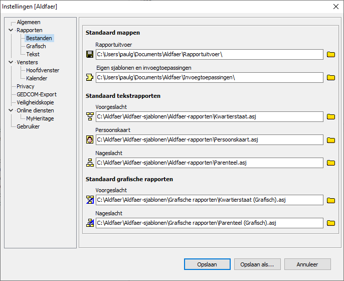 Standaardinstallatie met Aldfaer in C:\Aldfaer, met de mappen zoals aangegeven.