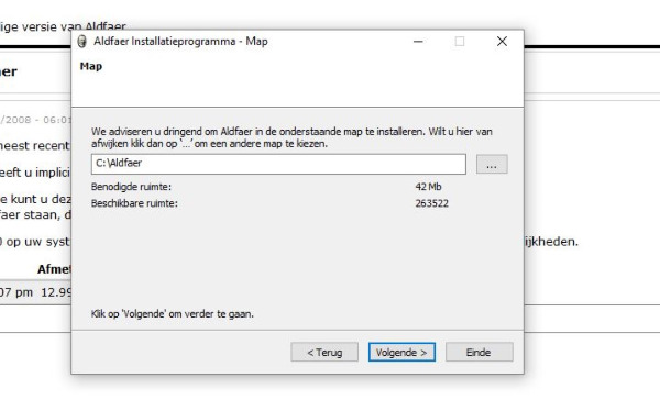 Ik ga naar C:\Aldfaer en vind daar geen bestand Aldfaer exe.
