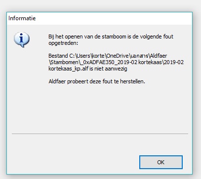 het bestand met de melding _kp.alf' ontbreekt moet je echt verwijderen van de C:\ schijf Eigenliijk alle bestanden aangemerkt met FOUT in de stamboomzoekerlijst zijn verdacht.