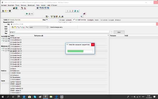 Als ik de codes ga aanpassen, krijg ik steeds een melding tegen het einde van het proces-reageert niet- zie printscreen. daarna gaat ie door en maakt het proces aF. EN DE CODES ZIJN VERNIEUWD. Het scherm blijft achter het hoofdschermwel openstaan en soms staat ook de personenlijst erbij open, dus 3 schermen. Ik klikt ze dan weg om verder te gaan. Het geeft verder geen problemen, maat ik wilde het even melden.