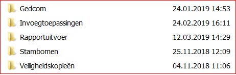 Verplaats daarna de inhoud van de map waarin de stamboombestanden en dergelijke staan zoals in het plaatje (dus alle getoonde mappen) naar b.v.