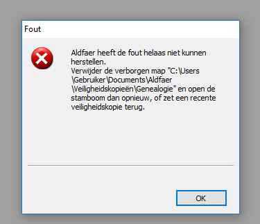 Ga eens na of u een stamboom-bestand vindt met naam 'stamboomnaam - voor conversie vs 7.alx' in de map stambomen van de vorige versie. Het inlezen van dit bestand geen probleem mogen zijn in de vorige versie van Aldfaer.