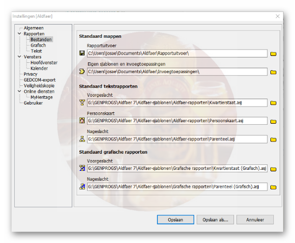 ieder heeft zijn eigen reden om een afwijkende installatie te doen; Wat ik bij u vreemd vind is dat u veiligheidskopieën wegschrijft naar de USB plug en de Invoegtoepassingen juist weer niet op de USB plug. Als u de USB plug installatie heeft om elders op een andere PC ook Aldfaer te draaien dan werken de Bonus rapporten dus niet en ook de taalswitch kan niet.