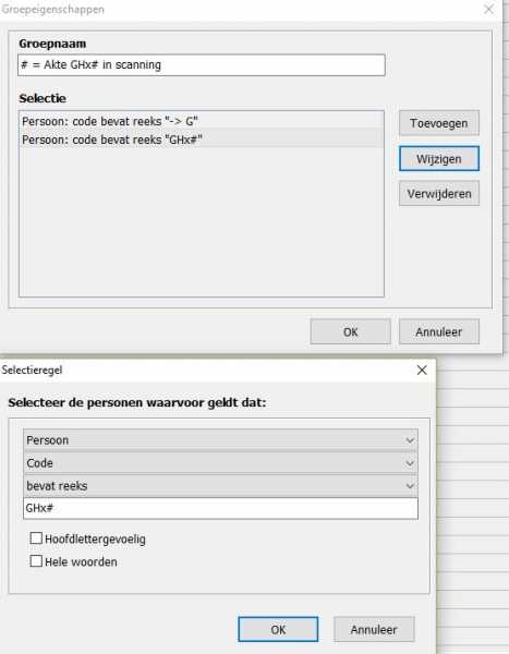 Om nu dit te bereiken stelde ik zekere codes in zoals GHx# om het aantal huwelijken aan te duiden.