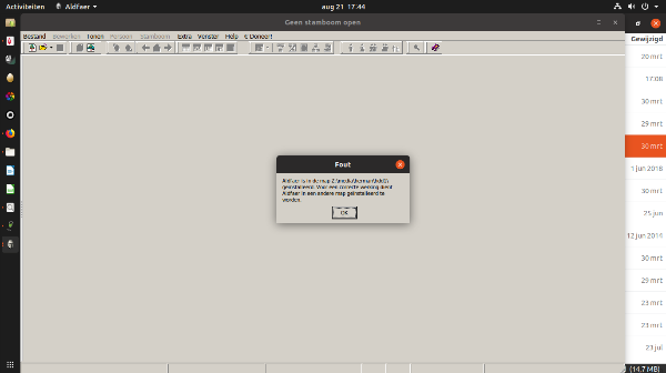 Ik heb van de buurman een veiligheidskopie uit 2006 gekregen en hij heeft mij gevraagd om de stamboom over te zetten in GedCom. Ik heb Ubuntu + Wine en Aldfaer 7.0 geinstalleerd. 7.2, waarbij het VK-foutje is verholpen gaat niet omdat ik dan de foutmelding bij de installatie krijg. Kan iemand mij helpen om de VK in GedCom om te zetten? Dank.