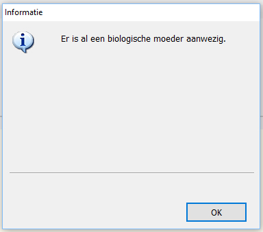 Als ik de moeder wil invullen bij een persoon dan krijg ik steeds de foutmelding "Er is al een biologische moeder aanwezig" maar er is geen moeder te vinden, ze is niet zichtbaar. Heeft er iemand dit probleem ook al gehad, of heeft er iemand de oplossing?