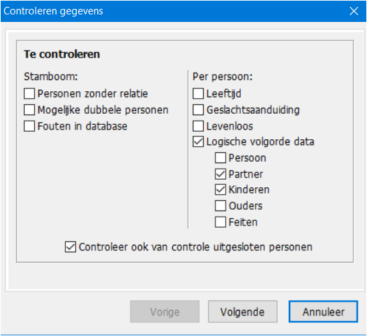 Enige tijd geleden zag ik een persoon in mijn stamboom met kinderen die óf gekoppeld zijn aan de verkeerde partner óf in de verkeerde volgorde stonden (foutieve of ontbrekende geboortedatum). Dat viel op doordat links van de naam van de kinderen het nummer van de relatie van de hoofdpersoon staat vermeld. Hier zag ik staan dat de kinderen waren geboren in niet-dezelfde of opvolgende relatie (bijv. een kind geboren uit relatie 1, 1, 2, 1, 2, 1, 3).