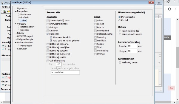 Op de achtergrond is een stukje Firefox, daarbovenop een geschaald (=kleiner gemaakt) venster van Aldfaer, en op de voorgrond het bewuste Instellingen venster van ALdfaer.