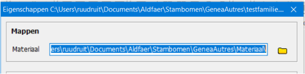 En als u dan de juiste map heeft gezet in Stamboom -> Eigenschappen draai dan daarna Stamboom -> Bestandscontrole en -reparatie, zodat alle koppelingen hersteld worden.
