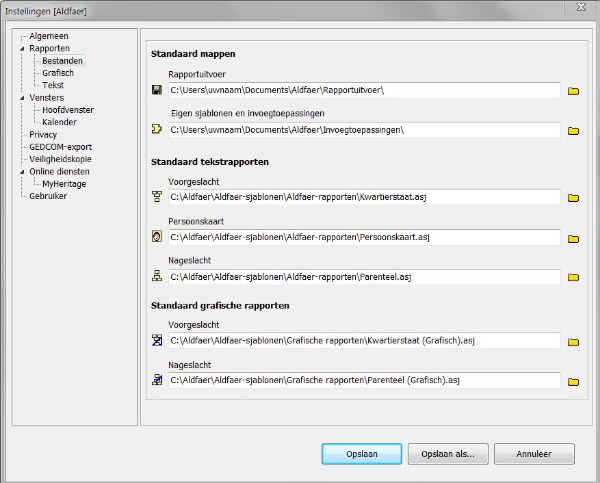 Daar zou moeten staan Pad Sjabloon: C:\Aldfaer\Aldfaer-sjablonen\Aldfaer-rapporten met een slash