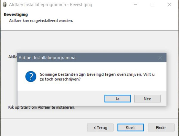 Bij een installatie worden alleen de bestanden die in de Aldfaermap (standaard: C:\Aldfaer) staan bijgewerkt, dus geen angst. Indien toch ongerust, maak een extra kopie en plaats het in een apparte map.