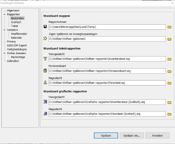 Ik heb wel de nieuwe versie van aldfaer ,ik was erbij als ie dit erop zette,alles werkt anders prima,alleen de map met foto's en akten heb ik opnieuw moeten koppelen,en ook sommige personen waren weg,ik deed dit dan thuis met een stick,alles er opnieuw opzetten en koppelen! Ik panikeerde al dat alles weg was,zou het niet aan de instellingen liggen dat ik dit nu niet meer kan doen? Ik las hier zopas, dat er nog anderen met hetzelfde probleem zitten,is dit bij hen al opgelost,ik ben bang als ik aldfaer verwijder dat ik mijn stamboom kwijt ben