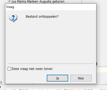 Als je in de vorige versie materiaal wilde ontkoppelen kreeg je een tussenscherm . Als je nu ONTKOPPELEN aanklikt ontkoppelt het programma meteen het gekoppelde item. Ik heb meer dan 100.000 koppelingen, en het gebeurt nog wel eens dat ik na het klikken van de rechtermuisknop op BESTAND ONTKOPPELEN klik i.p.v. BESTAND KOPPELEN. Ik ben dan nu meteen de koppeling kwijt en weet niet wat ik gewist heb.