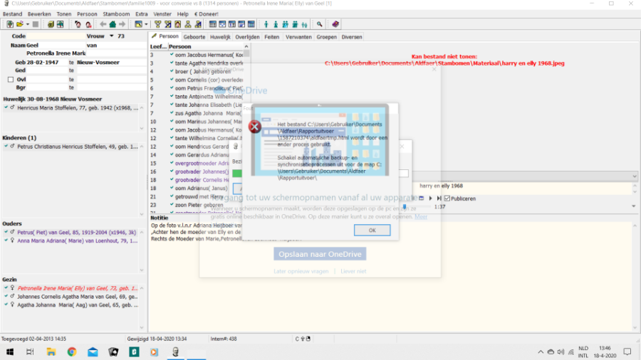 Ik kan geen kwartierstaat meer maken krijg steeds de volgende melding
