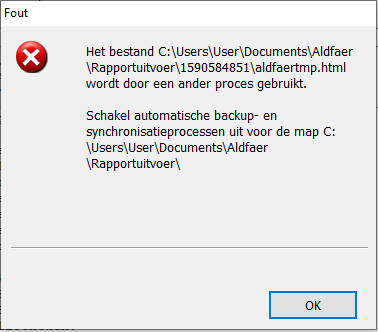 Begrijpelijk want de map Rapportuitvoer was "bezet" door de Windows verkenner