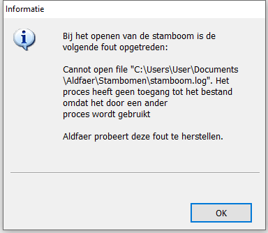 daarna open Aldfaer .-> Menu Bestand -> Zoek Aldfaer bestanden en klik de regel aan die u wenst waarna een knop 'Open stamboom' geactiveerd wordt.