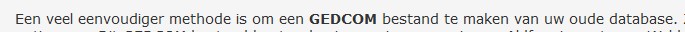 Dan beveel ik u aan uw handleiding op dat punt aan te passen conform mijn commentaar dat men mogelijke database fouten niet herstelt, conversierapporten niet ziet én voorbijgaat aan vernieuwingen in de gedcom-export.