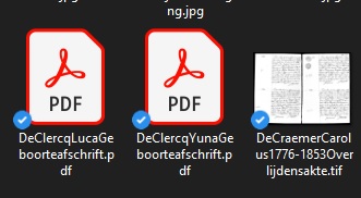 jaycee, gezien het feit dat een icoontje pdf verschijnt in het tabblad persoon en gezien het feit dat het met alle pdf bestanden zo is, denk ik niet dat hier moet aan getwijfeld worden. de bestanden openen normaal met adobe. maar voor alle zekerheid hierbij de bestandsnamen: DeClercqYunaGeboorteafschrift.pdf en een screendump van de bestanden in de map.