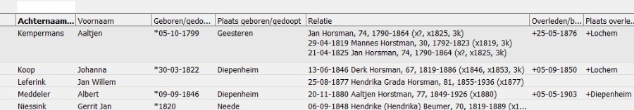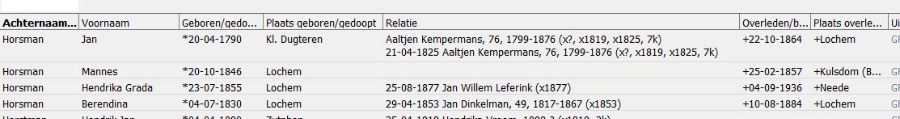 Als ik in de Personenlijst kijk bij de gegevens van Jan Horsman, dan heeft hij 2 maal een relatie met Aaltjen.