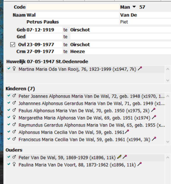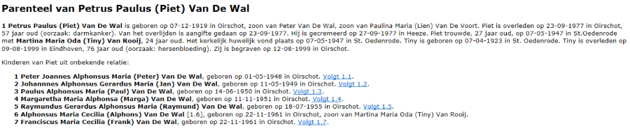 Krijg bij uitdraai Parenteel bij enkele gezinnen het volgende: b.v. "Kinderen van Piet uit onbekende relatie"