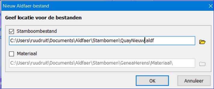 C:User\Naam\Documenten\Aldfaer\naam stamboom.aldf Ernaast bevindt zich een geel mapje