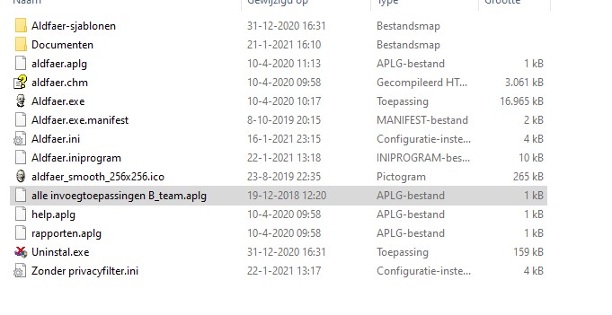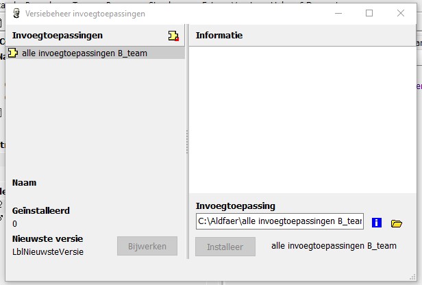 Volgens de instructie moet u het bestandje zetten in C:\Aldfaer\uw inlognaam\Documenten\Aldfaer\Invoegtoepassingen\Alle invoegtoepassingen B_team\Alle invoegtoepassingen b_team.aplg